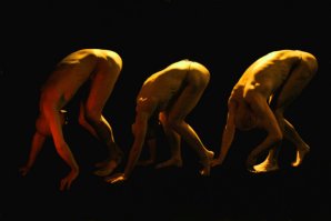 atleti- acrobati del gruppo che miscela teatro e danza contemporanea con